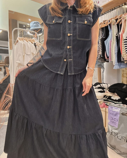 🇰🇷牛仔布☀️蝴蝶袖束腰+橡筋腰蛋糕裙