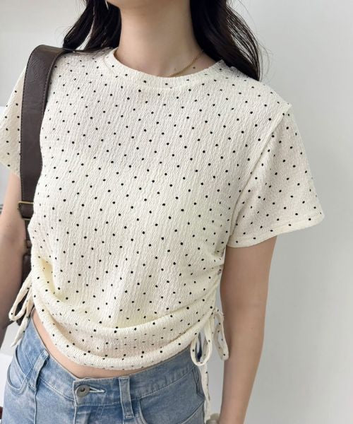 🇯🇵清爽物料☀️暗紋波點綁帶Tee