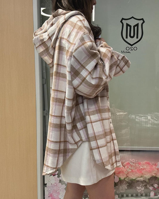 🇰🇷秋冬版 粉色格仔連帽外套🧥