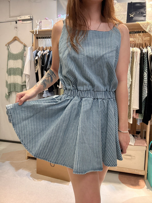🇰🇷吊帶直紋泡泡牛仔裙