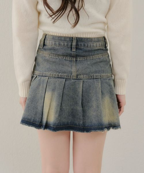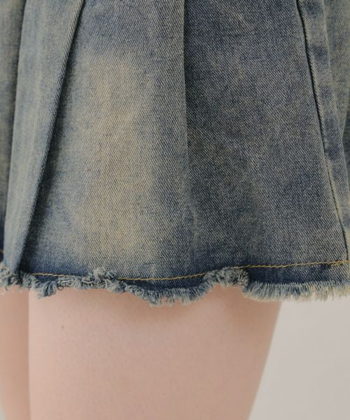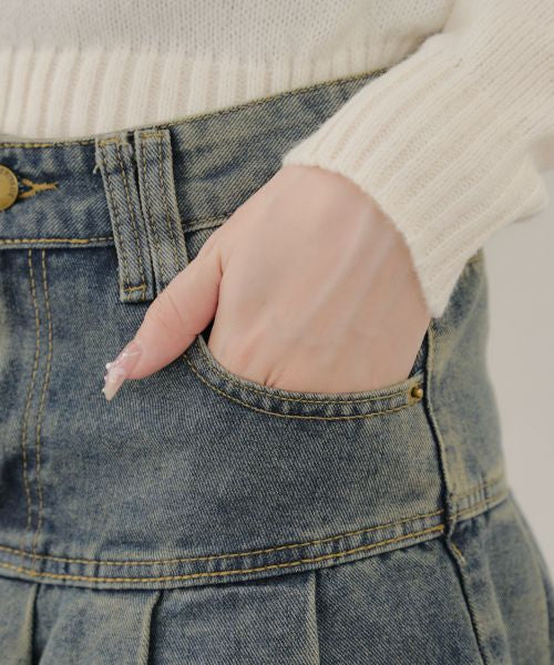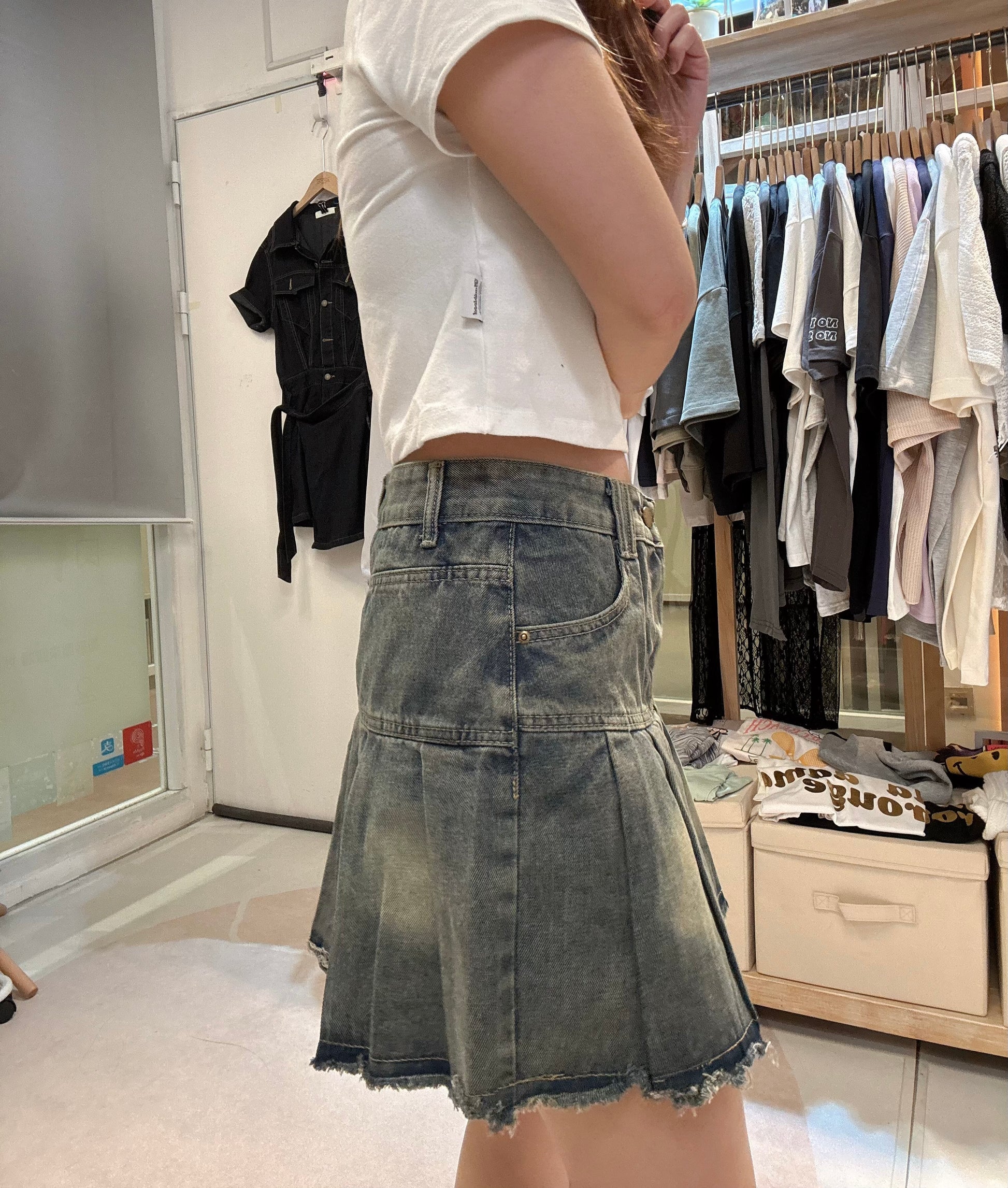 🇯🇵水洗牛仔百褶裙 內有褲仔
