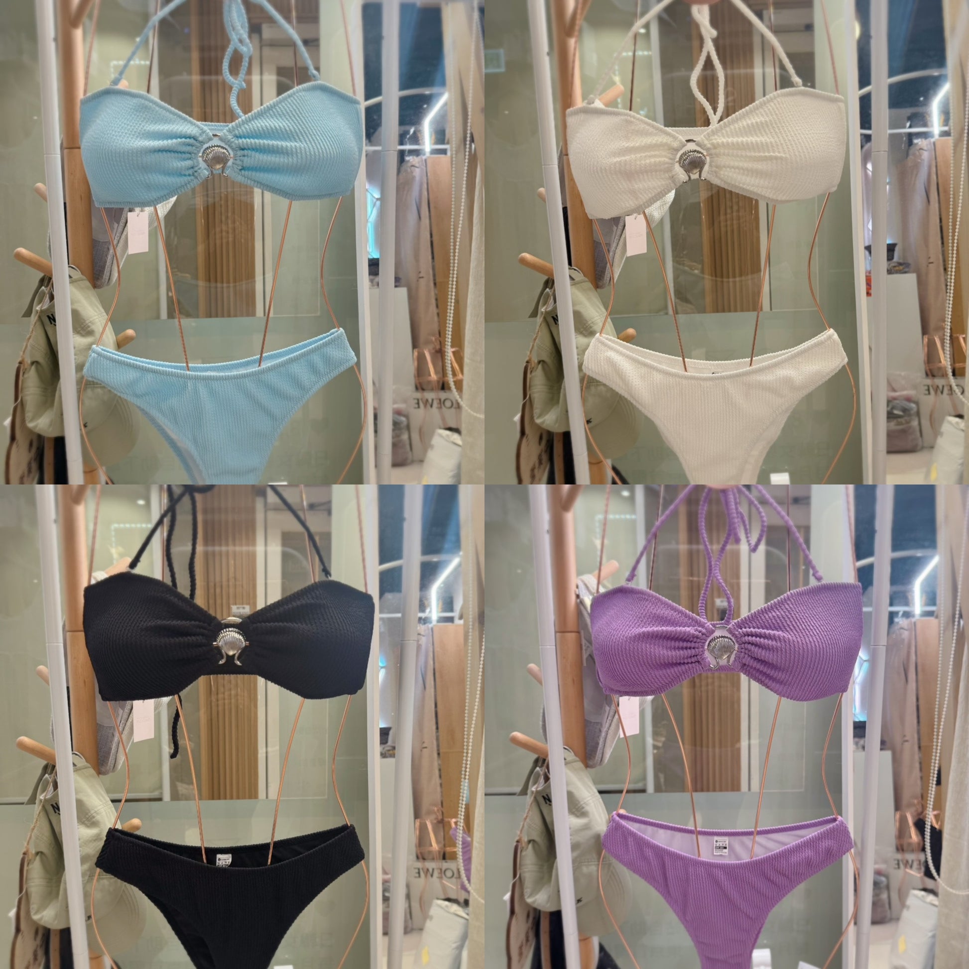 🇹🇭泰國製 直紋兩件頭貝殼泳衣*4色 附送聚胸啫喱胸墊